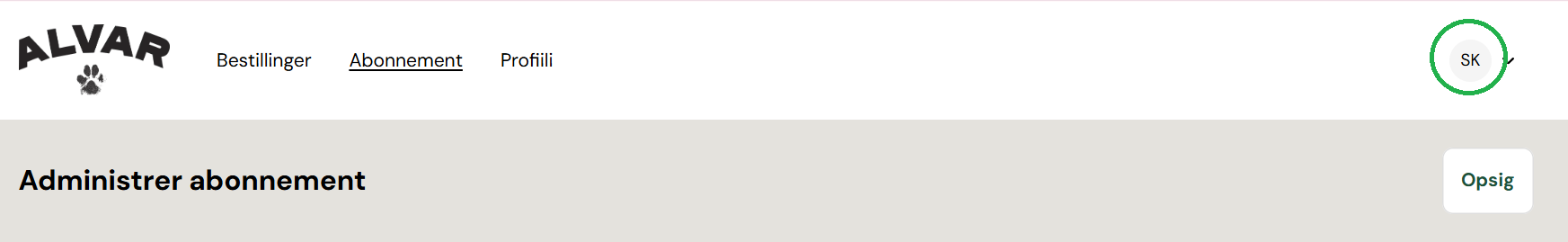 Du kan ændre faktureringsoplysninger via din profil på kundesiderne. Du finder profilen ved at klikke på dine initialer øverst i højre hjørne. Dine nuværende betalingsoplysninger finder du under afsnittet “Betalingsmetoder”, hvor du også kan tilføje et nyt betalingskort til bestillingen.
