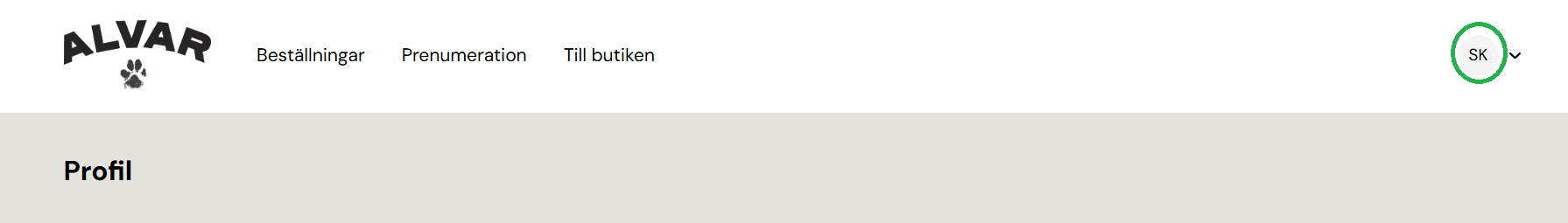 Du kan ändra faktureringsuppgifter via profilen på kundsidorna. Du når profilen genom att klicka på initialerna uppe i högra hörnet. Dina nuvarande betaluppgifter hittar du under avsnittet ”Betalningsmetoder”, där du även kan lägga till ett nytt betalkort för beställningen.